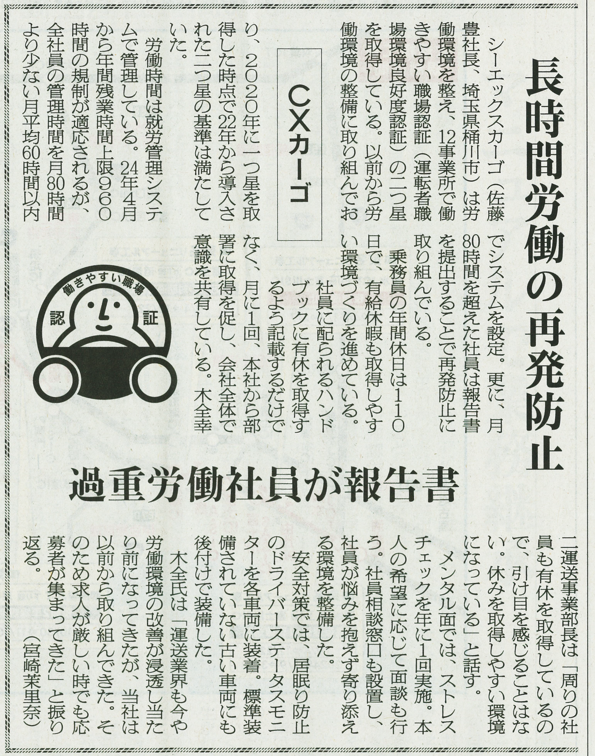 長時間労働の再発防止について、新聞に取り上げられました。