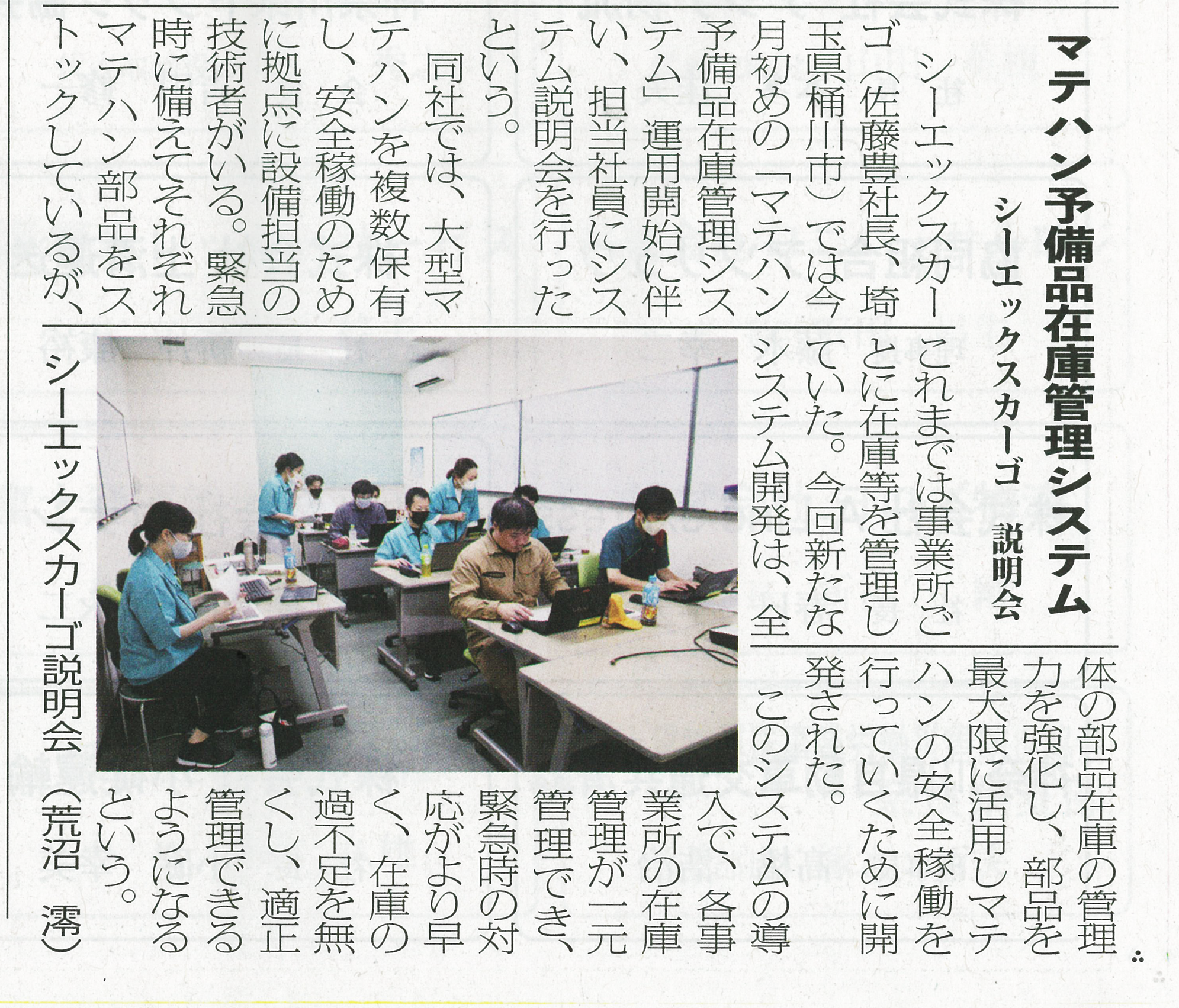 当社で運用を開始した「マテハン予備品在庫管理システム」について、新聞に取り上げられました。