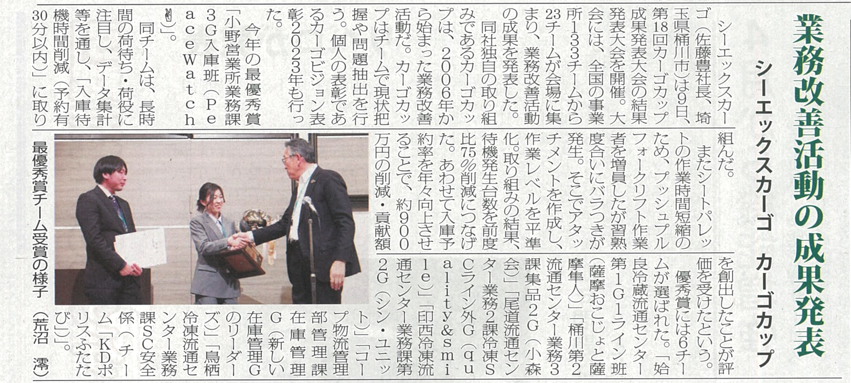 当社で実施したカーゴカップ成果発表大会について、新聞に取り上げられました。