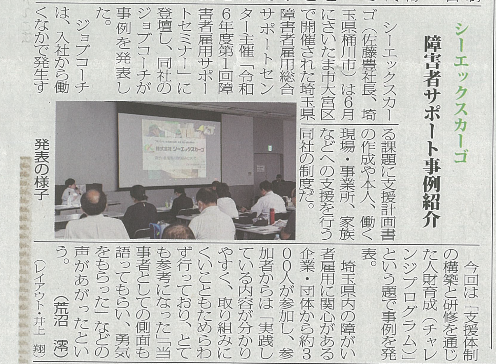 6月に開催された障害者雇用サポートセミナーでの弊社の事例紹介について、新聞に取り上げられました。