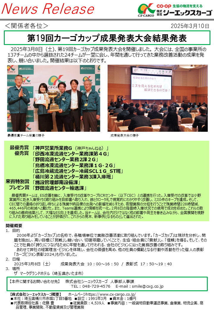 3. 2024年度(第19回)カーゴカップ成果発表大会結果発表