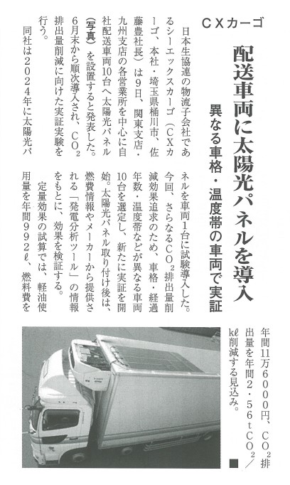 配送車両に導入した太陽光パネルについて、新聞に取り上げられました。