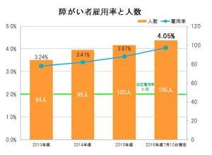 誰もが働ける職場、互いに育て合える職場づくりを進める中で、障がい者雇用の法定雇用率2.0%に対し、7月10日時点で雇用率が4.05%となりました。